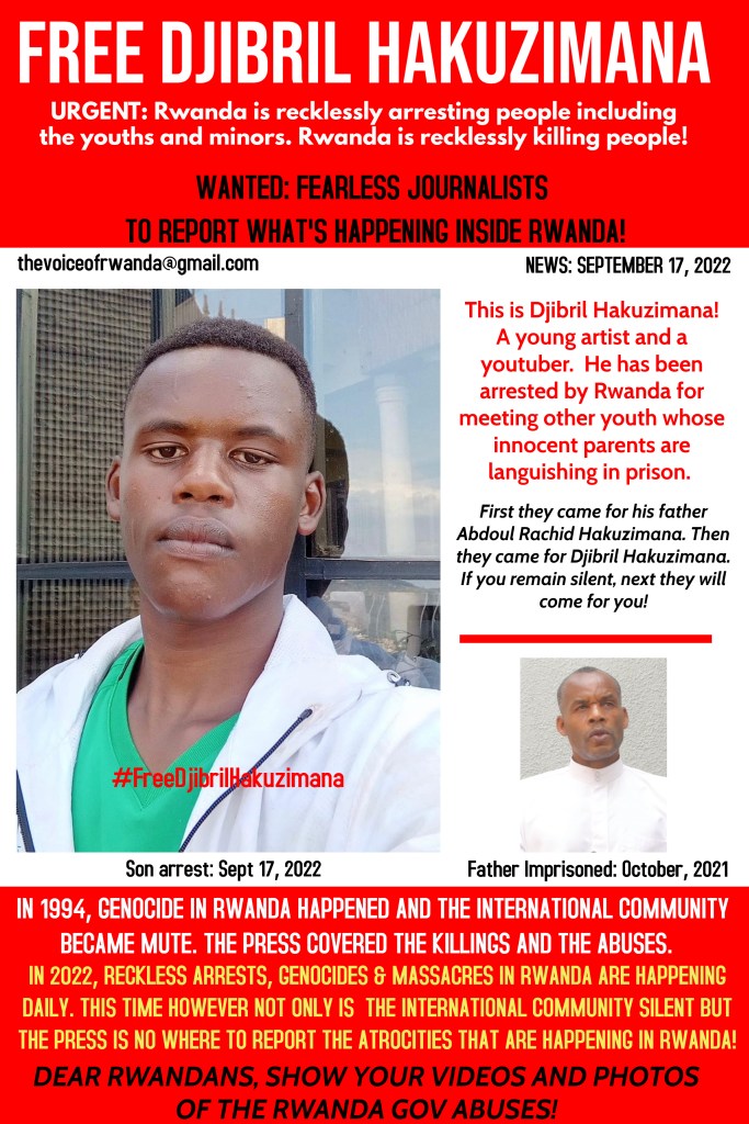 Hakuzimana, a young artist and a son of political prisoner Rashid was arrested with many other youth whose parents are victim of the RPF Regime.